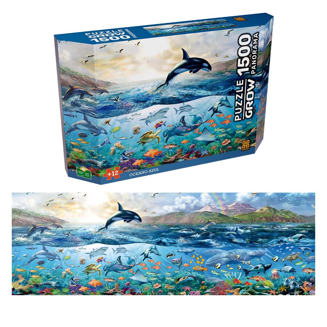 O Quebra-Cabeça Panorama Oceano Azul 1500 Peças traz a beleza do fundo do mar para a sua casa. Com uma imagem vibrante que retrata a vida marinha em todo o seu esplendor, este quebra-cabeça é ideal para quem busca um desafio maior e momentos relaxantes de diversão.